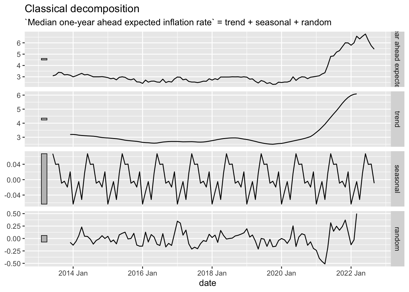 model(stl = classical_decomposition(`Median one-year ahead expected inflation rate` ~ season(12))) %>%