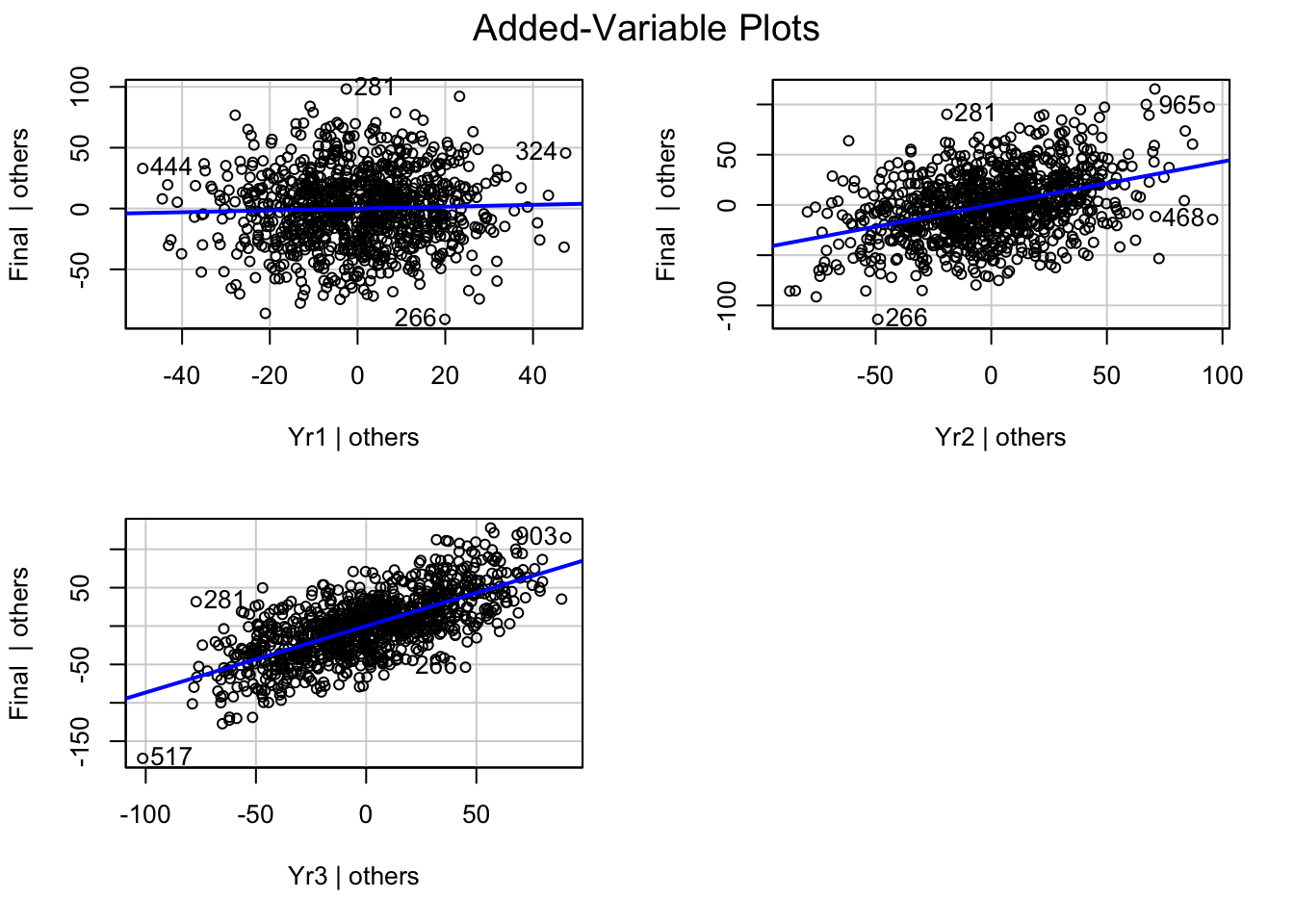 lm(formula = Final ~ Yr1 + Yr2 + Yr3, data = ugtests)