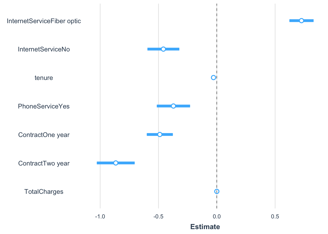 TotalCharges -3.961e-05 5.244e-06 -7.555 4.73e-14 ***